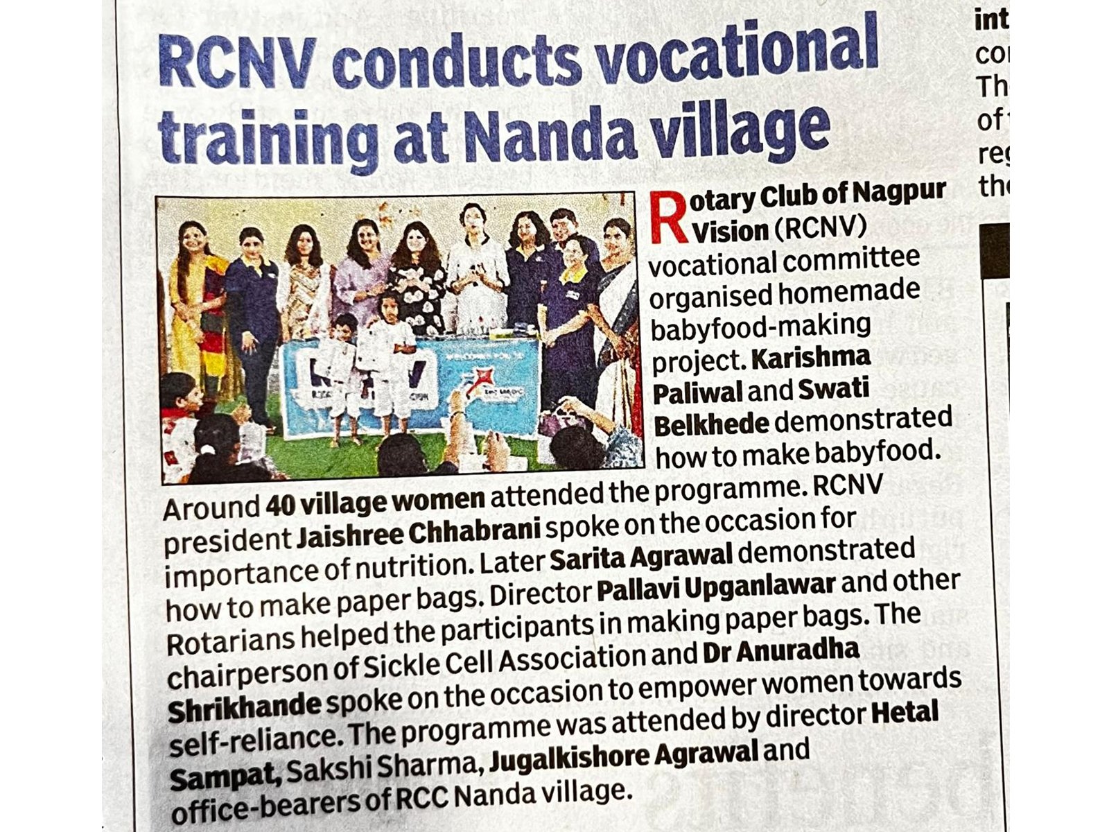 The vocational committee of Nanda Village Rotary Club of Nagpur Vision (RCNV) re- cently organised a successful home made cerelac making project.
